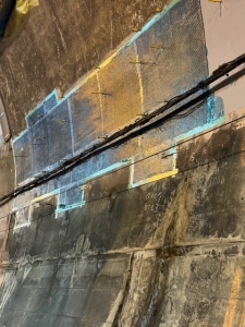 静岡県内の高速道路にて、トンネル補強工事を施工いたしました。 【シート補強工事(施工状況)】 【シート補強工事(施工状況)】 【シート補強工