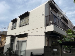 東京都内にて、ひび割れ補修に伴う外壁塗装と防水工事を施工しました。