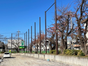 神奈川県某所にて、防球ネットの交換工事に伴う、支柱塗替え工事です。