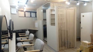 神奈川県長津田にて、美容院の内装リフォーム工事を施工いたしました。 【施工前】 【クロス張替え状況】 【施工中(美容設備設置状況)】 【施工