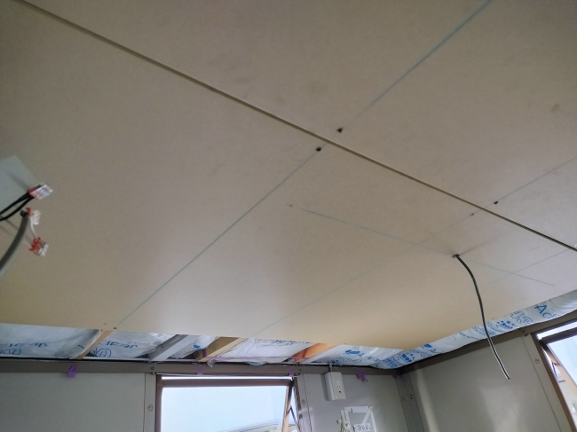 【5.】断熱材敷設後の天井へのボード打ち付け