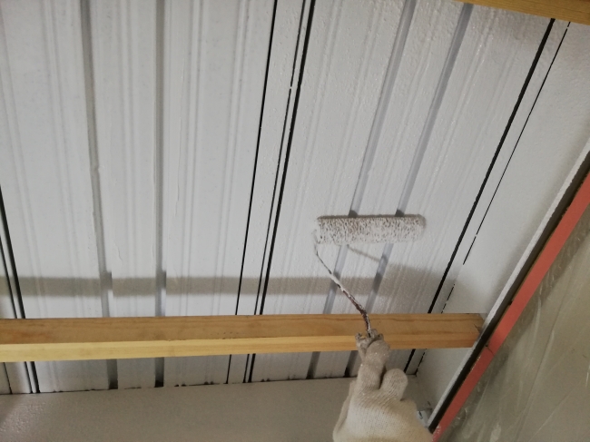 1.これまでの結露による錆びた天井などの鉄部へ、錆止め剤を塗布します。